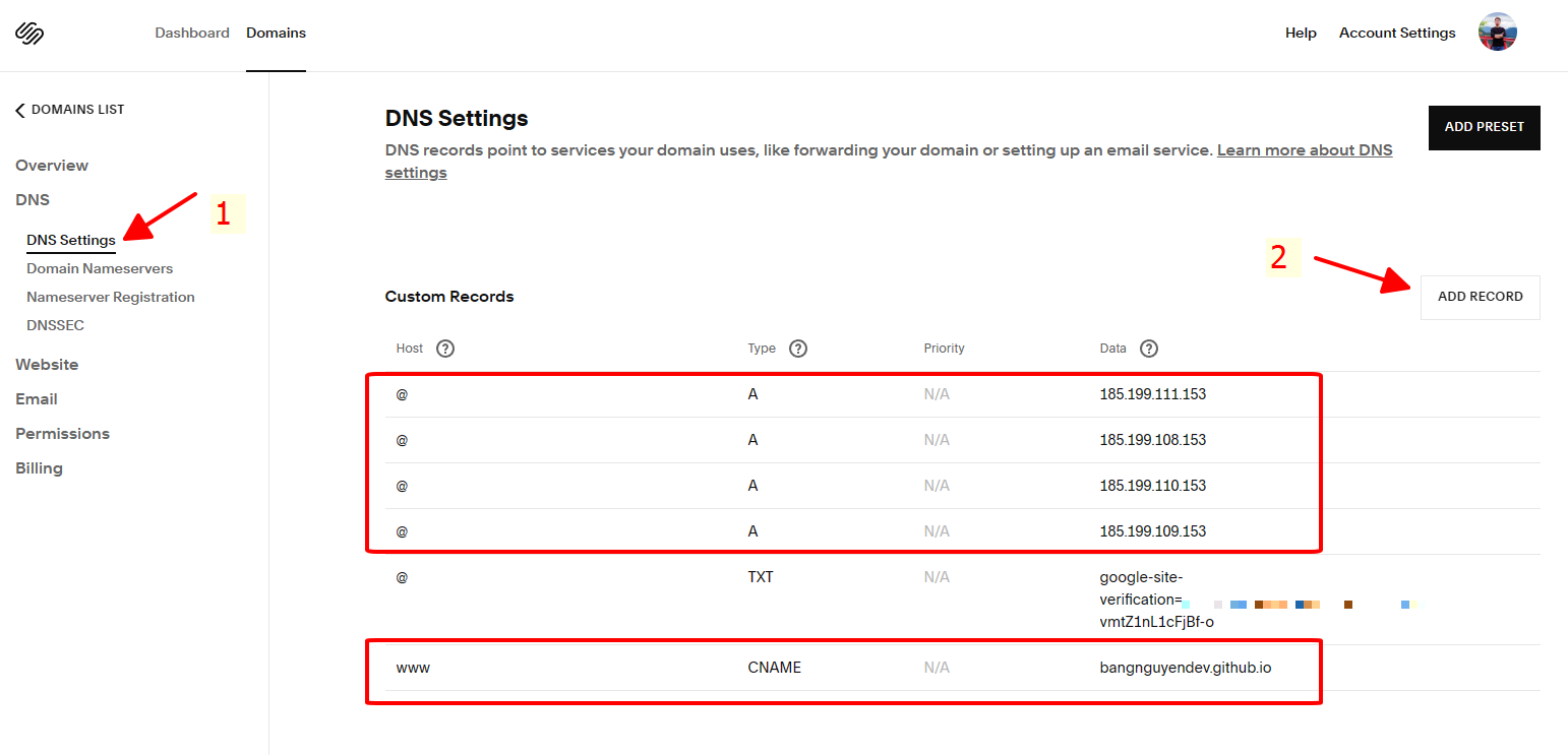 ⚙️ Kết quả Cấu hình DNS Squarespace